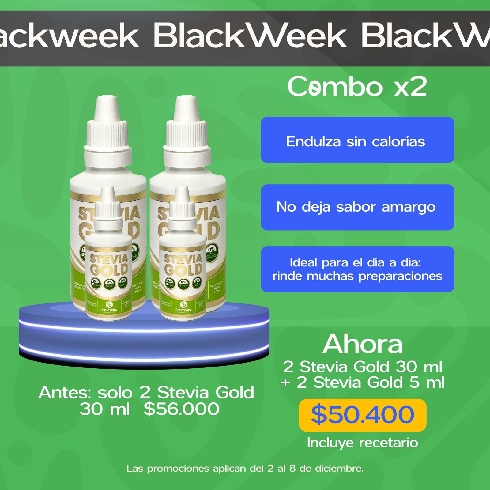 ✅ Llévate 2 Stevia Gold (30ml) antes por $56.000, ahora por solo $50.400🎉